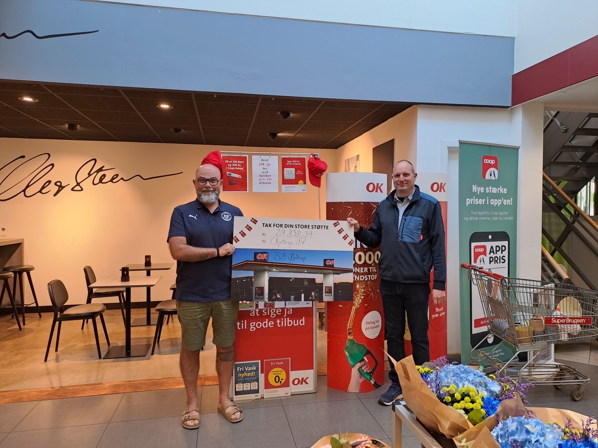 Igen i år har Kjellerup IF fået en check. Stort tak skal lyde til OK og Super Brugsen.