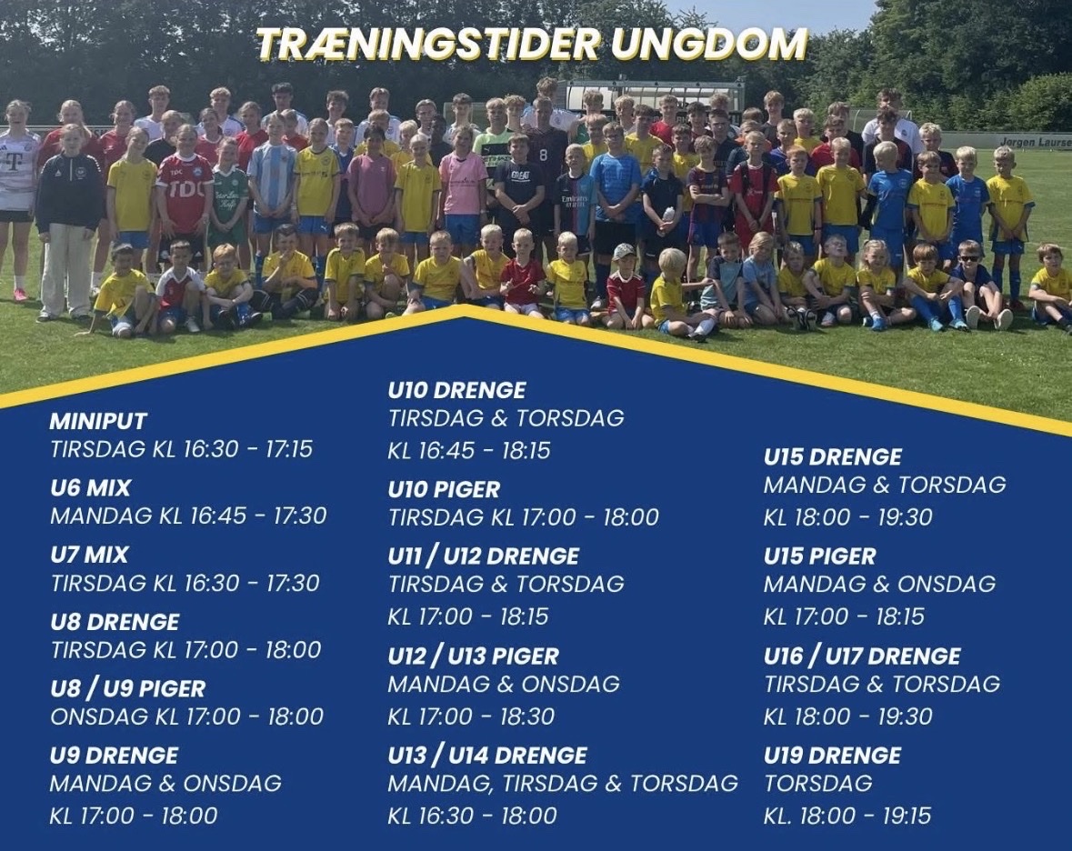 👇 Se træningstiderne på billedet herunder